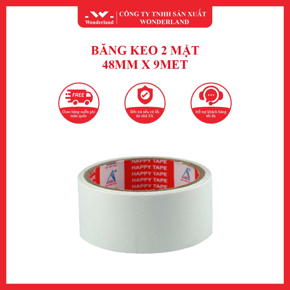 Với nhiều năm kinh nghiệm, Wonderland xin cam kết rằng băng keo 2 mặt 48mm x 9met tại công ty đều được trải qua quá trình sản xuất chặt chẽ để đạt được chất lượng tốt nhất.