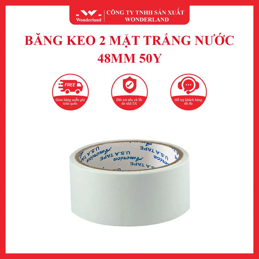 CÔNG TY WONDERLAND CHUYÊN CUNG CẤP CÁC LOẠI BĂNG KEO 2 MẶT TRẮNG NƯỚC 48MM 50Y GIÁ SỈ TỐT NHẤT: