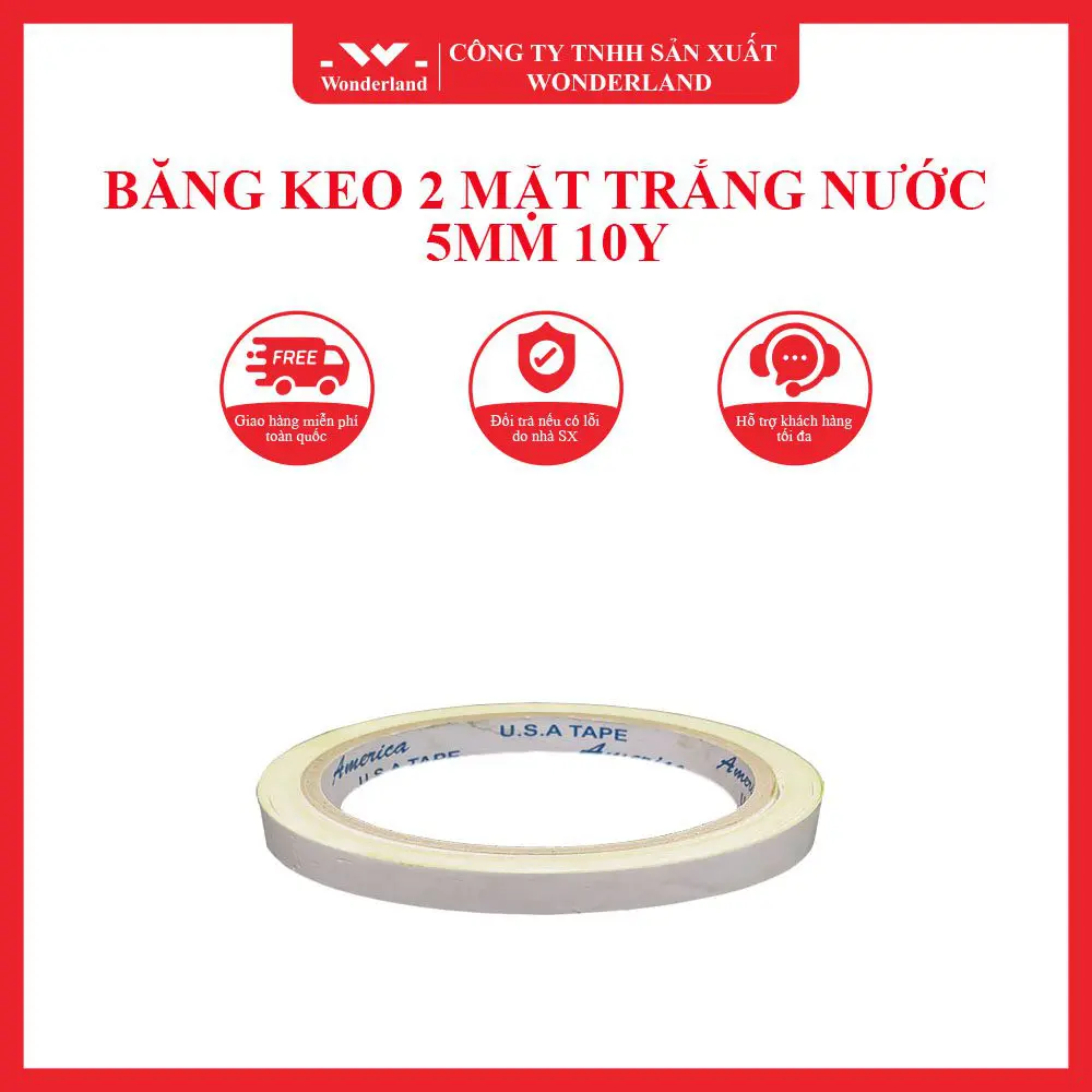 Băng keo 2 mặt trắng nước 5mm 10Y | Cuộn | 1.500 |