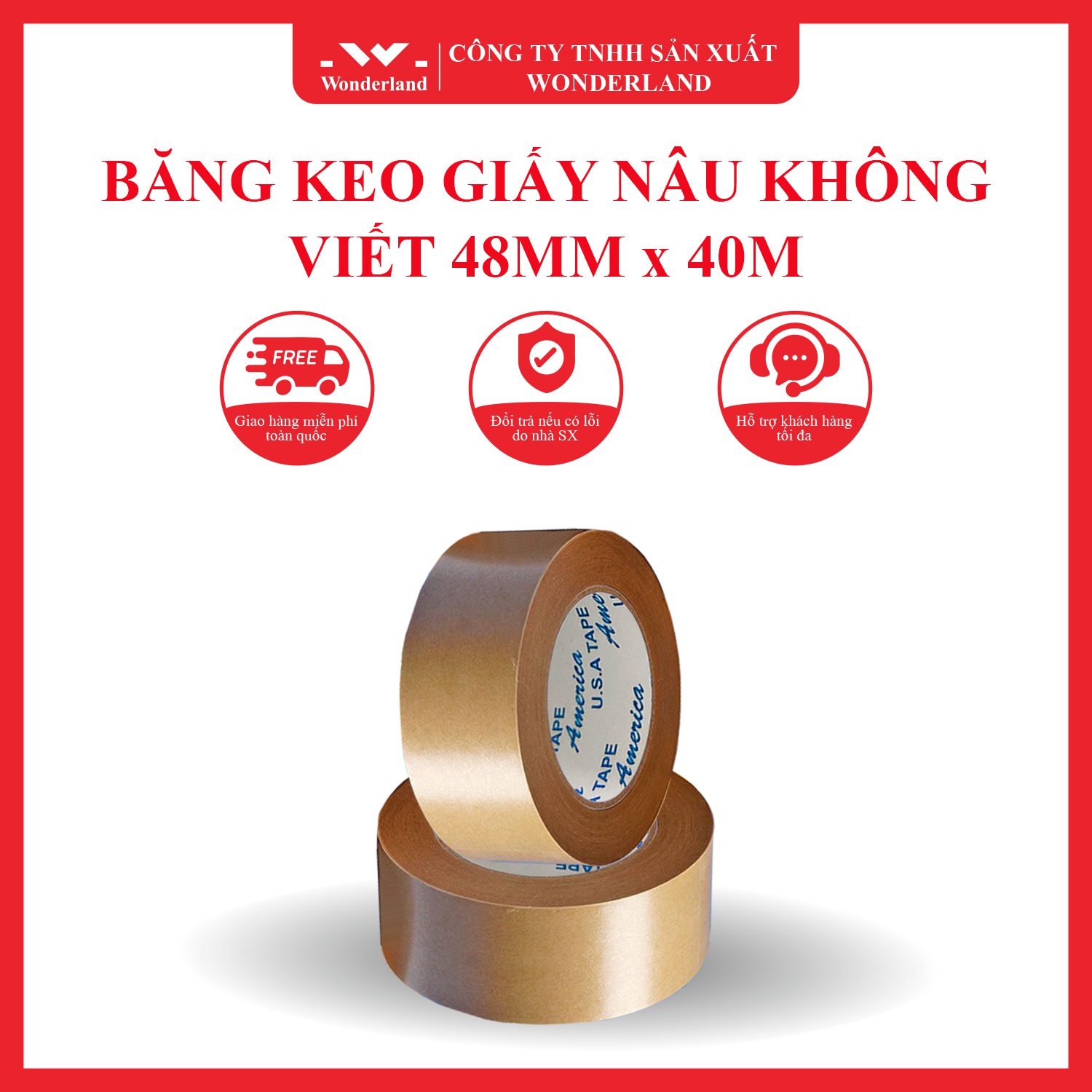 Công ty Wonderland tự hào là đơn vị cung cấp băng keo giấy nâu không viết 48MM x 40M với chất lượng vượt trội và giá sỉ tốt nhất trên thị trường.