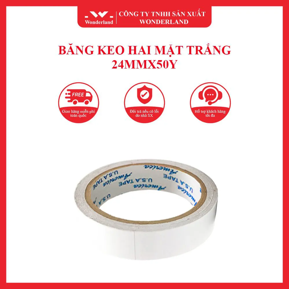 Là một trong những nhà sản xuất băng keo lâu đời, Wonderland cam kết rằng mọi sản phẩm tại công ty đều được trải qua các quy trình sản xuất chặt chẽ, hiện đại và tất cả đều hướng đến một mục đích: sản phẩm chất lượng. Người tiêu dùng có thể an tâm mà sử dụng băng keo hai mặt trắng 24mmx50y tại công ty chúng tôi nhờ vào các chính sách bảo hành sản phẩm mà Wonderland cung cấp cho quý khách hàng.