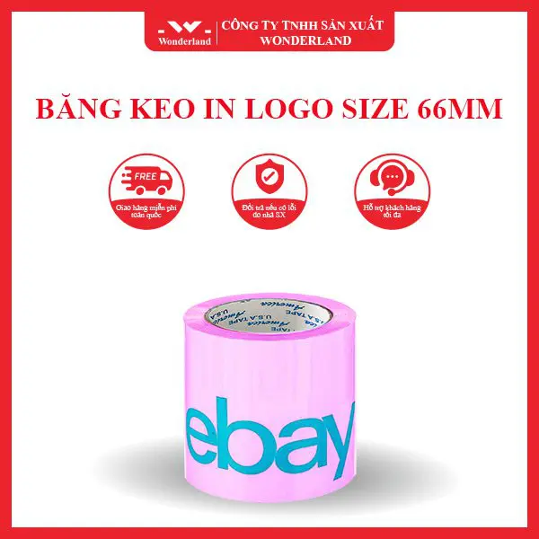 Cũng có cùng cấu tạo như băng keo trong 66mm, tuy nhiên, nó lại được in logo và có nền màu tùy theo yêu cầu thiết kế của khách hàng.