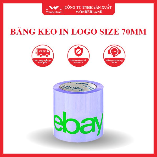 Băng keo in logo này có bề rộng lên đến 70mm và có thể in được nhiều thông tin về tên công ty, thương hiệu, số điện thoại… trên bề mặt với nhiều màu sắc theo yêu cầu thiết kế của khách hàng.