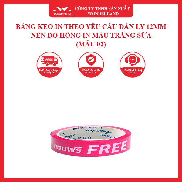 Khi quyết định đặt hàng Băng Keo In Theo Yêu Cầu Dán Ly 12mm với nền đỏ hồng và in màu trắng sữa (Mẫu 02), việc lựa chọn Công ty Wonderland là một quyết định đúng đắn và đáng tin cậy.