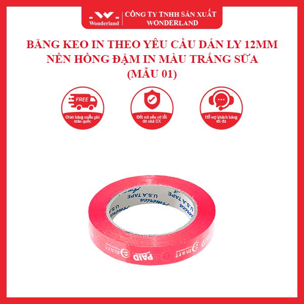 4. VÌ SAO NÊN ĐẶT HÀNG BĂNG KEO IN THEO YÊU CẦU DÁN LY 12MM NỀN HỒNG ĐẬM IN MÀU TRẮNG SỮA (MẪU 01) TẠI CÔNG TY WONDERLAND