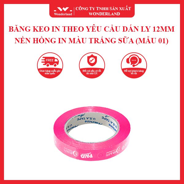 LỢI ÍCH KHI ĐẶT HÀNG BĂNG KEO IN THEO YÊU CẦU DÁN LY 12MM NỀN HỒNG IN MÀU TRẮNG SỮA (MẪU 01) TẠI CÔNG TY WONDERLAND