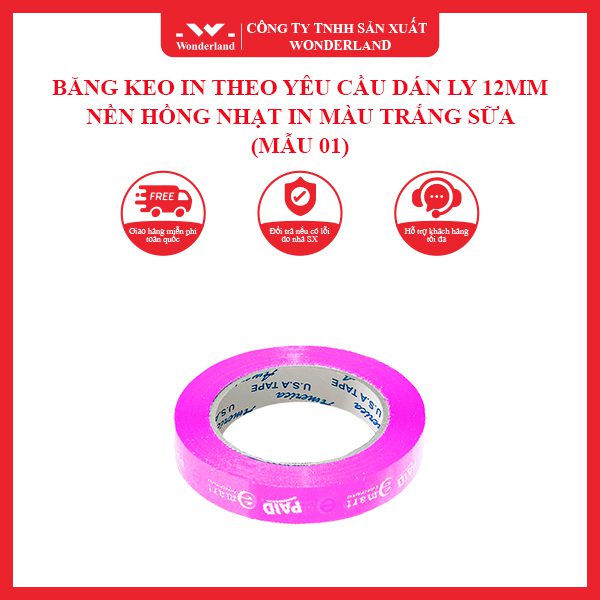 Khi đặt hàng băng keo in theo yêu cầu dán ly 12mm nền hồng nhạt in màu trắng sữa (Mẫu 01) tại công ty Wonderland, quý khách sẽ được hưởng một loạt các lợi ích đáng giá: