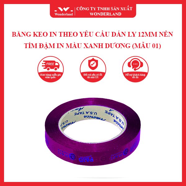 LỢI ÍCH KHI SỬ DỤNG BĂNG KEO IN THEO YÊU CẦU DÁN LY 12MM NỀN TÍM ĐẬM IN MÀU XANH DƯƠNG (MẪU 01)