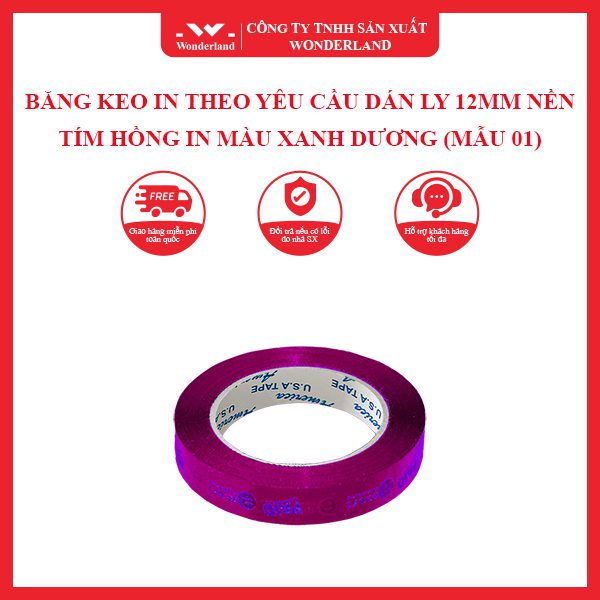 VÌ SAO NÊN CHỌN ĐẶT HÀNG BĂNG KEO IN THEO YÊU CẦU DÁN LY 12MM NỀN TÍM HỒNG IN MÀU XANH DƯƠNG (MẪU 01) Ở CÔNG TY WONDERLAND?