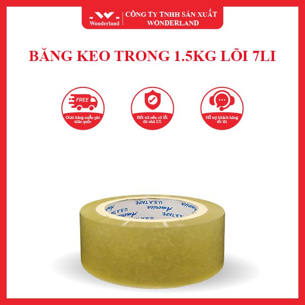 Ngoài dòng băng keo trong 1.5kg lõi 7li, Wonderland còn sản xuất những vật liệu phục vụ ngành đóng gói khác như: băng keo trong, băng keo đục, băng keo in chữ, băng keo màu, màng PE…