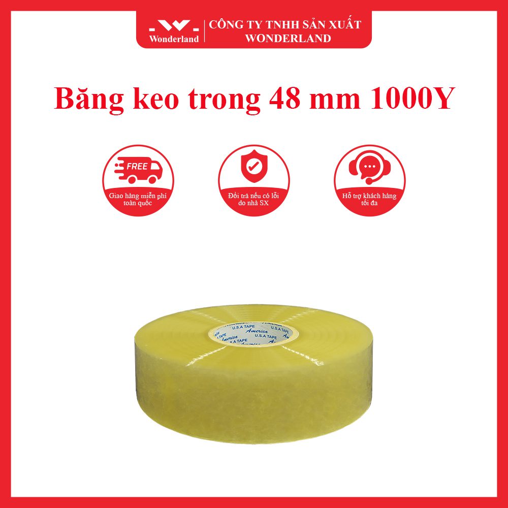 Với băng keo trong 48MM x 1000Y của Wonderland, bạn hoàn toàn yên tâm về chất lượng sản phẩm và dịch vụ.