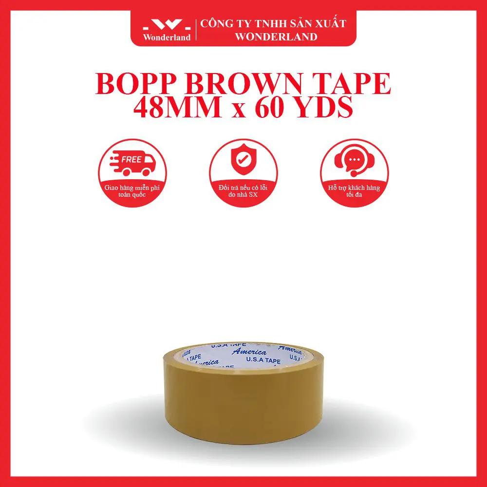BOPP brown tape at Wonderland is manufactured under modern technology with high adhesion and following strict quality testing. Thus, BOPP brown tape at Wonderland has ensured the length, coating film, durability, and warranty during use.