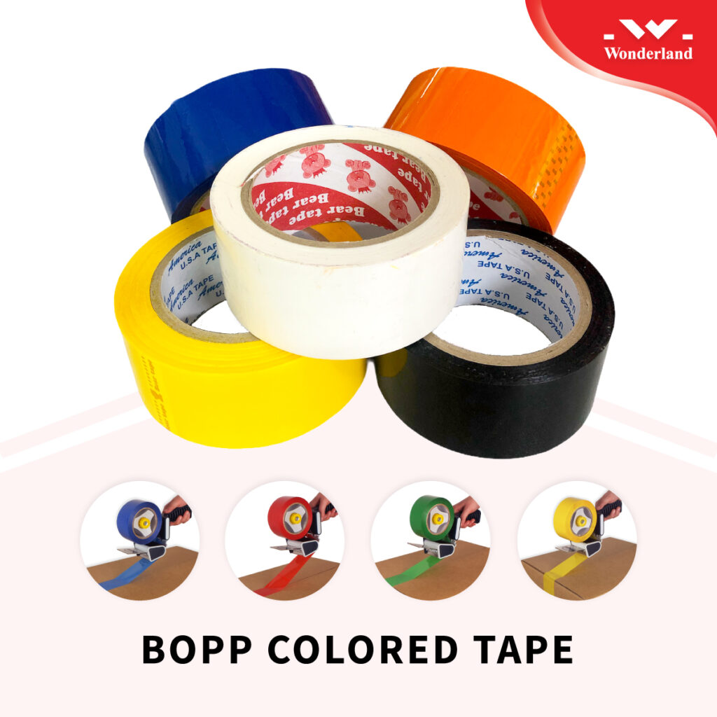 Wonderland offers BOPP colored tape 48mm x 80 yds at favorable prices for both customers giving large quantity orders and loyal customers. We also offer free door-to-door delivery.
