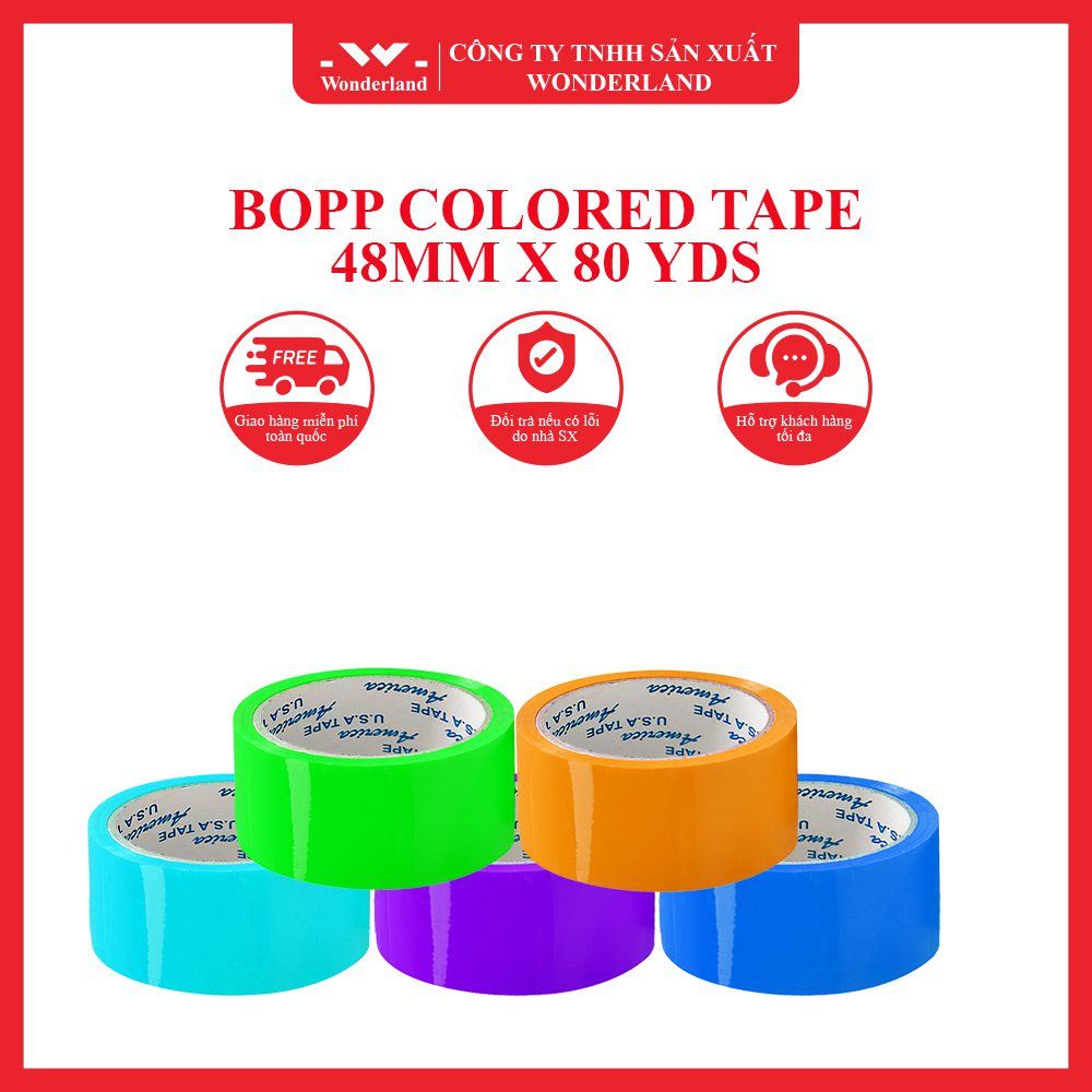 Wonderland offers BOPP colored tape 48mm x 80 yds at favorable prices for both customers giving large quantity orders and loyal customers. We also offer free door-to-door delivery.