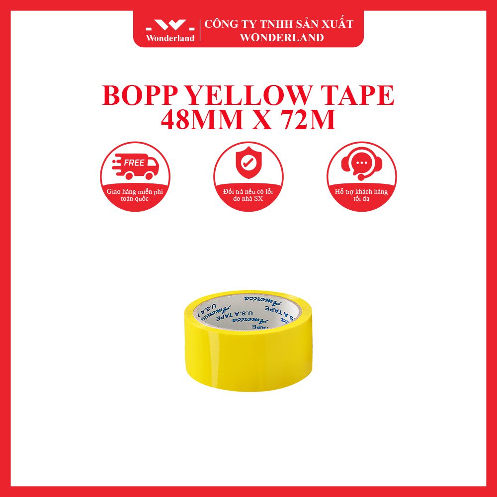 Wonderland is a leading adhesive tape and PE stretch film manufacturer and supplier in Vietnam. By advanced technology and skilled workers, annually, we have been providing a large number of tape products such as BOPP clear or brown tape, masking tape, double-sided tape, PE stretch film or PE industrial bags, etc. Customers can find their satisfaction with our products and services, including