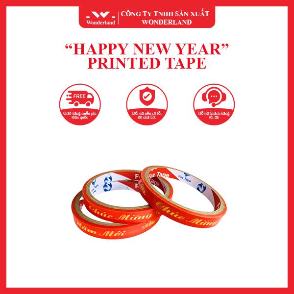There is a wide range of “Happy New Year” printed tape suppliers on today’s market, however, only a minority of them can provide customers with high-quality adhesive tape at bargain prices that can suit each person’s income. Wonderland takes pride in being the leading supplier of adhesive tape who can meet all the customer’s demands. Therefore, in case you wish to place an order our “Happy New Year” printed tape on New Year time or need more information about our products and services, please contact us via phone number: +84 91 445 54 10 (WhatsApp).