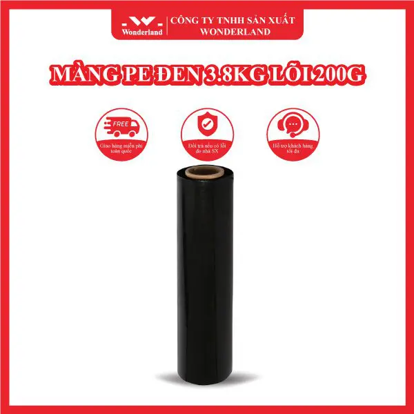 - Màng PE đen của Wonderland được sản xuất từ nguyên liệu cao cấp, đảm bảo độ dẻo dai và khả năng bám dính tốt, giúp bảo vệ hàng hóa một cách tối ưu.