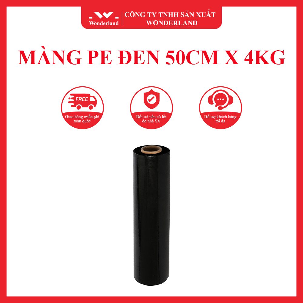 Màng Pe đen 50cm x 4kg được sử dụng rất nhiều trong các ngành đóng gói, người ta thường sử dụng loại màng này trong quá trình vận chuyển, xuất khẩu và lưu kho.