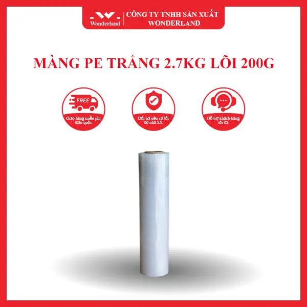 Quý khách hàng đang quan tâm đến sản phẩm Màng PE Trắng 2.7kg Lõi 200g và muốn biết nơi đâu có thể tìm mua sản phẩm này? Chúng tôi xin hân hạnh giới thiệu rằng bạn có thể tìm mua sản phẩm chất lượng tại công ty sản xuất màng PE Wonderland.