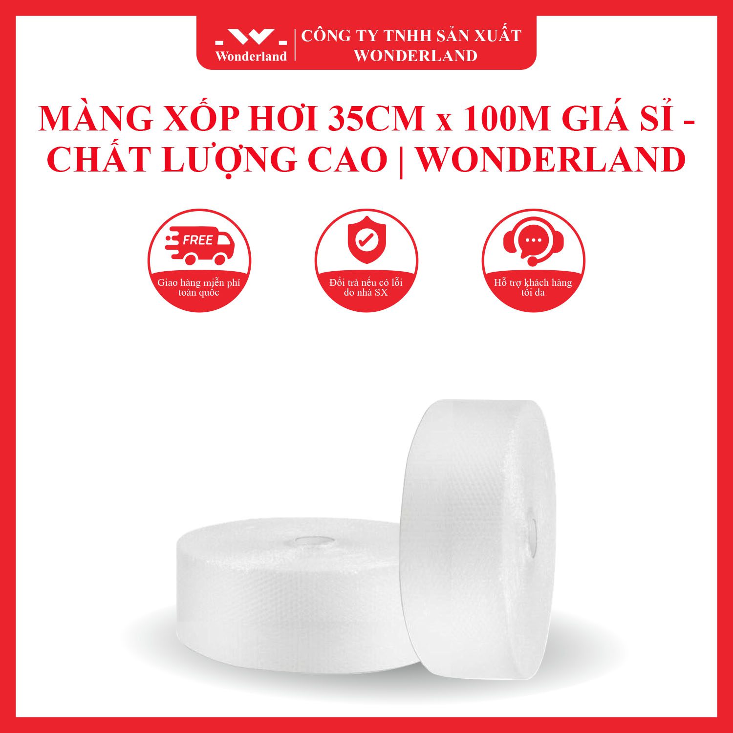 Wonderland cam kết cung cấp màng xốp hơi với chất lượng, giá thành hợp lý và dịch vụ chuyên nghiệp. Với hàng ngàn khách hàng tin dùng, chúng tôi tự hào là địa chỉ uy tín hàng đầu trong lĩnh vực đóng gói.