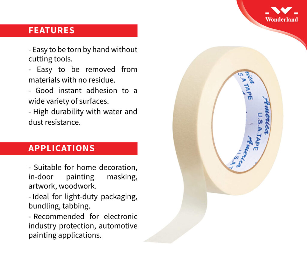 Non-writable masking tape at Wonderland is manufactured by modern technology with high adhesion. Due to following strict quality testing processes, non-writable masking tape at Wonderland ensures the accuracy of the length, backing film and flexibility, etc. Moreover, we also offer customers beneficial policies such as product warranty during use and free door-to-door non-writable masking tape shipping service.