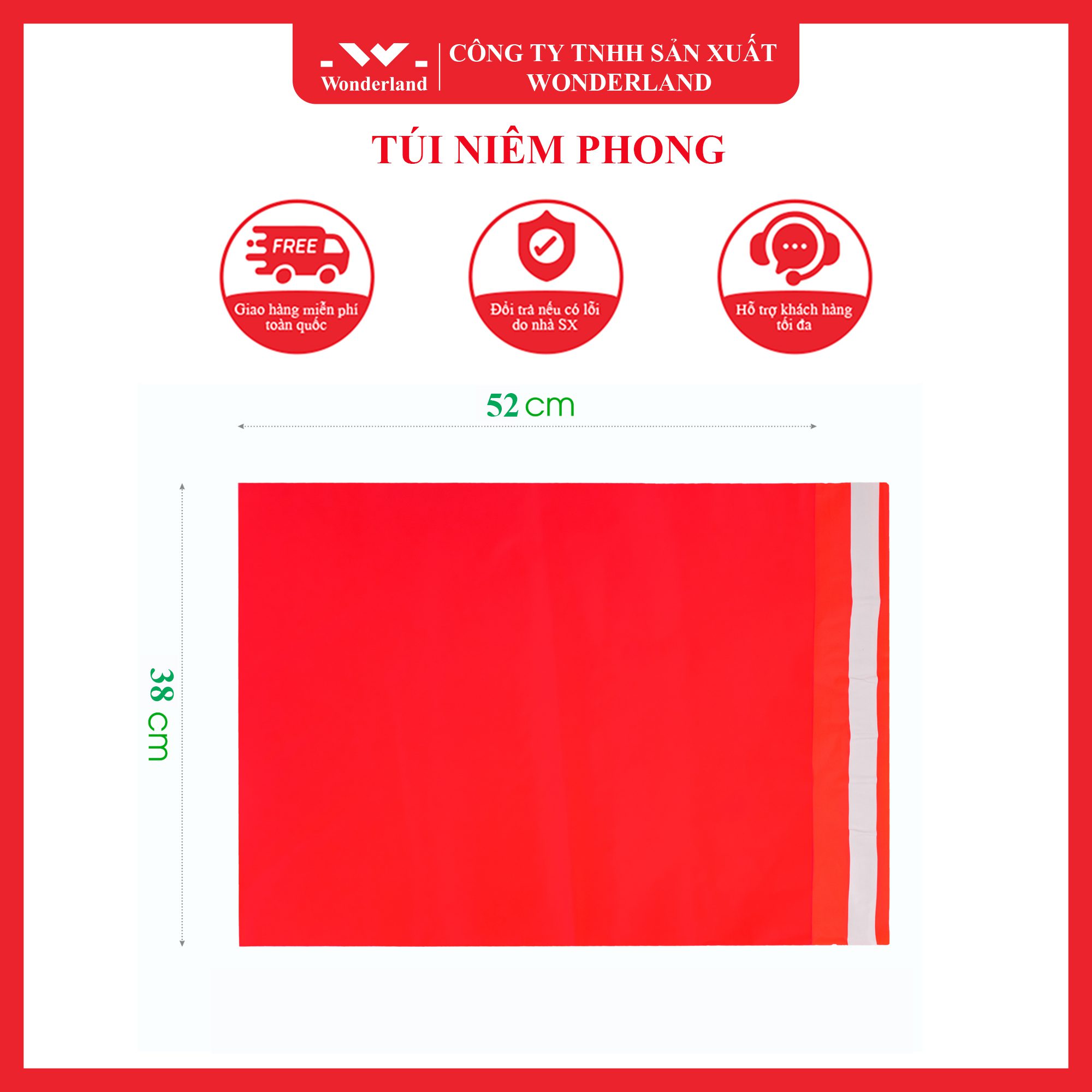 Wonderland luôn có sẵn số lưượng lớn túi niêm phong màu đỏ 38cm x 52cm với giá bán sỉ tốt, bạn có thể ghé ngay để cơ sở sản xuất của chúng tôi để có thể tận mắt chứng kiện quy trình sản xuất các loại túi niêm phong hàng hoá với đa dạng các loại màu sắc khác nhau.