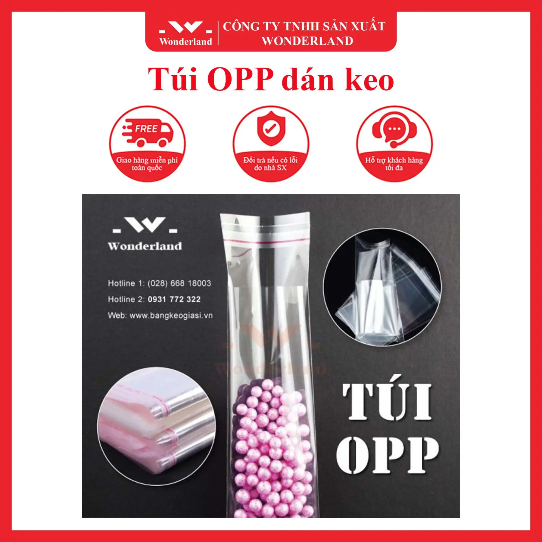 Wonderland cam kết đem đến cho khách hàng sản phẩm chất lượng với giá sỉ cạnh tranh nhất. Dưới đây là những lý do bạn nên lựa chọn túi OPP của chúng tôi: